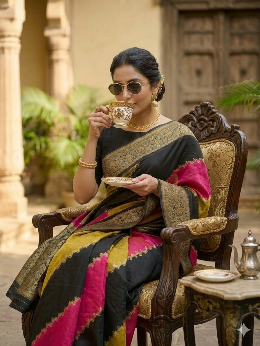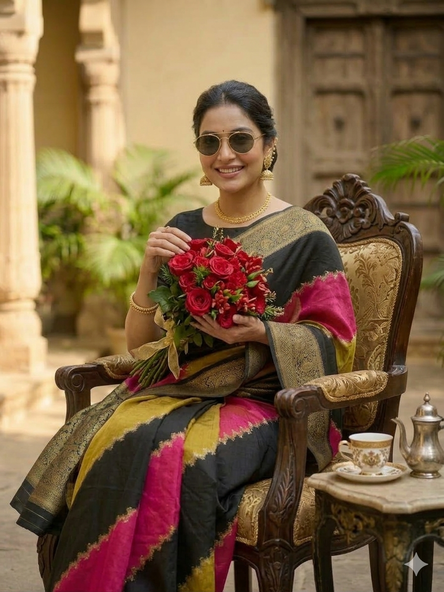 Styling Guide: Pair with chandbali earrings, layered kundan necklaces, maang patta, and glass bangles. Add juttis or heels. Saree styling tip: Modern dhoti drape for parties, traditional pleats for functions. Finish with bold eyeliner, pink lips, and rose gajra and let Lahariya patterns mesmerize.