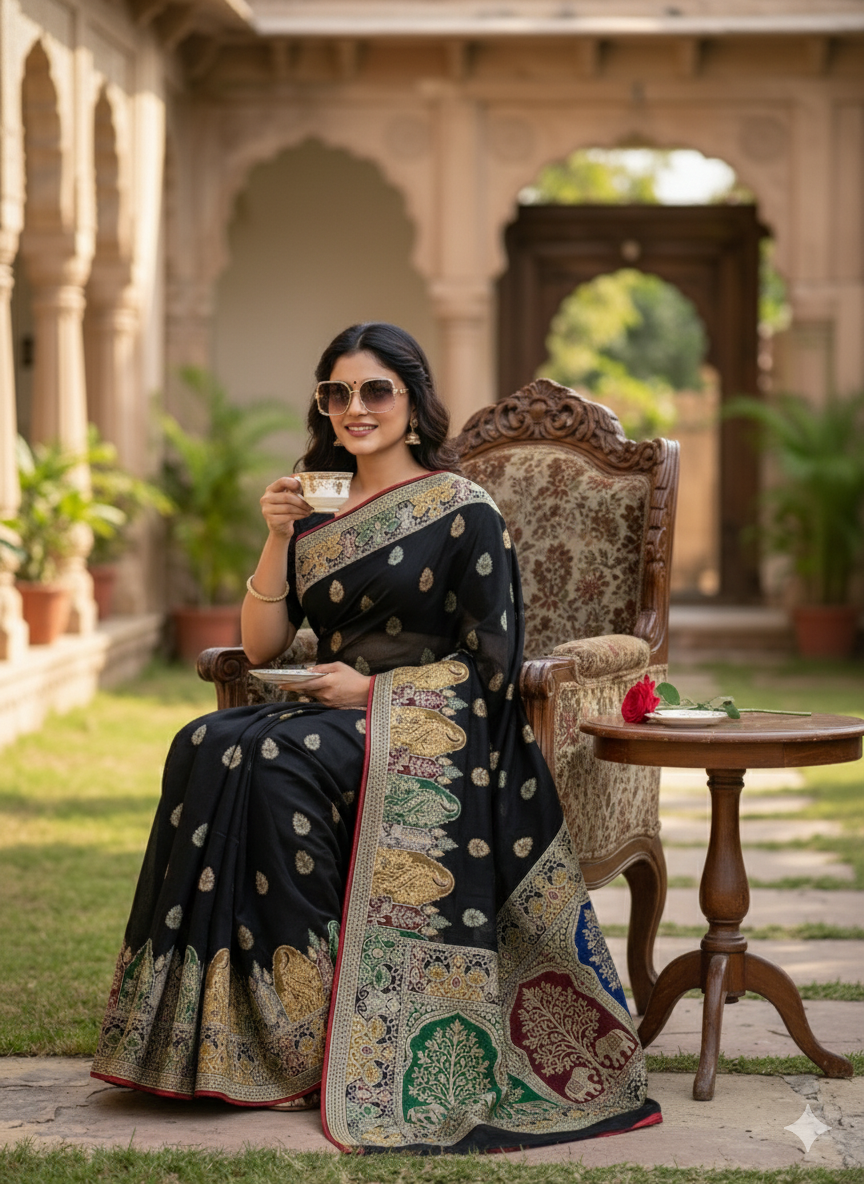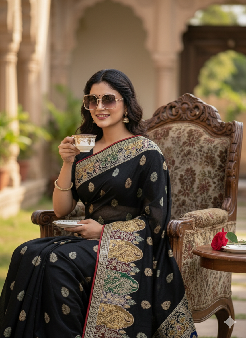 Where to Wear: Perfect wedding saree guest, bridal showers, engagement ceremonies, upscale receptions, festive puja, or evening galas. Silk sophistication suits North-South celebrations.