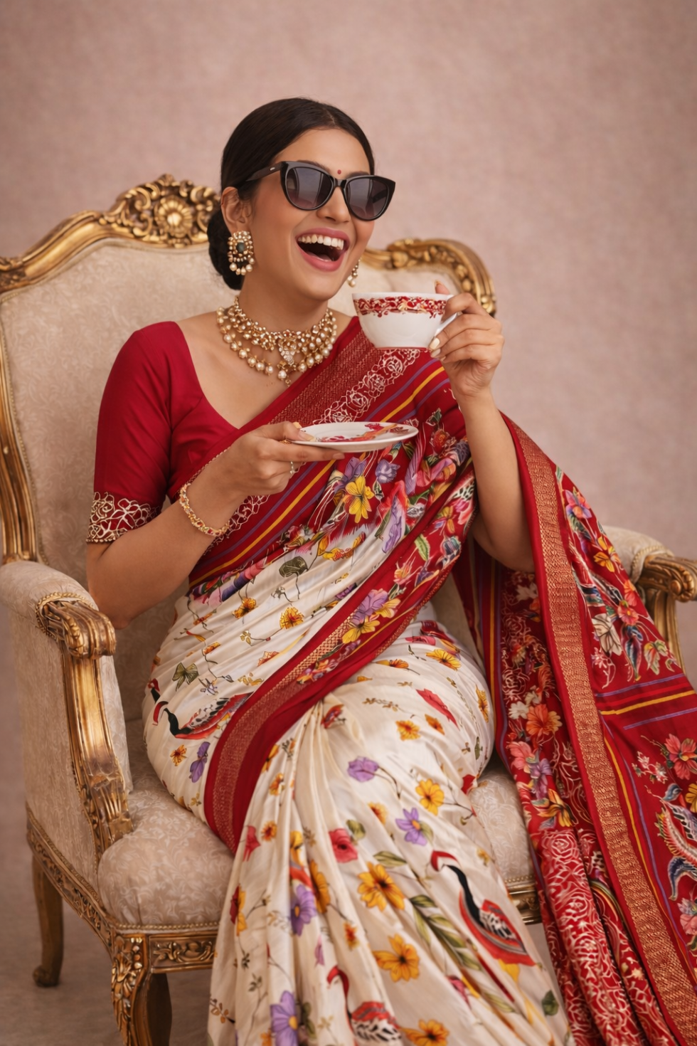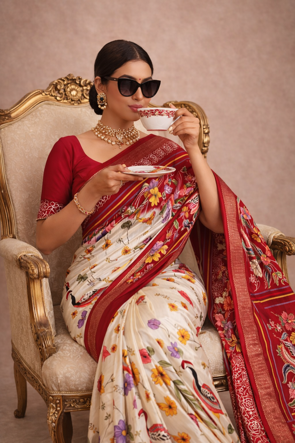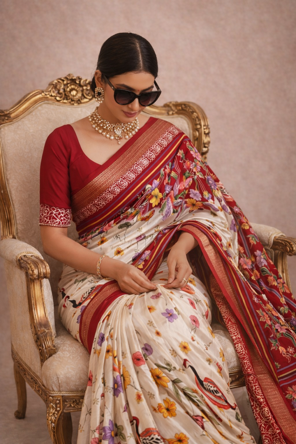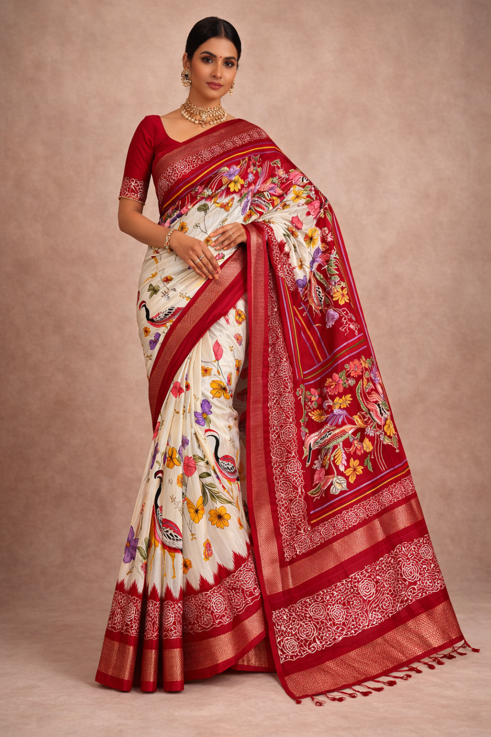 *Adorned with rich gold borders, the saree exudes luxury and grace. The Rich pallu and Contrast blouse complement the full saree, making it a complete ensemble of opulence.*